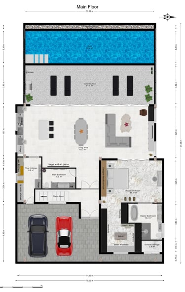 Upper Living & Entertaining Area: The upper-level living space opens directly onto the pool terrace, capturing the essence of indoor-outdoor tropical living.